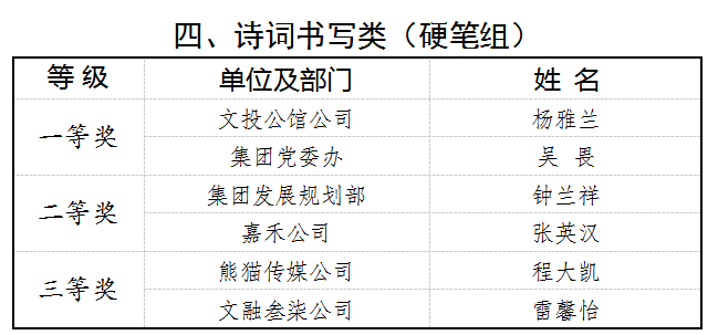 市作家协会副主席蒋登科、市书法家协会副主席李文岗、重庆电视台知名主持人薛焱丹作为此次比赛的专家评审进行专项评选,最后按照“诗词原创内容类(古风组)”、“诗词原创内容类(新诗组)”、“诗词书写类(毛笔组)”、“诗词书写类(硬笔组)”、“诗词朗诵(团体组)”、“诗词朗诵(个人组)”六大类评出各类奖项。评委蒋登科先生认为:“此次征集的原创类诗歌作品立足新时代的特殊语境,立足国家发展大局,围绕文化企业发展,抒写作者对国家的深爱,对企业的信心,对未来的展望,格调向上,情感真挚,体现了企业及其员工在企业文化建设方面的同心同向,深层次表达了作者对未来发展的信心。这样的活动对于凝聚人心、建构同心协力的文化氛围、提升员工的文化品位、养成企业的文化精神,必将发挥独特的引领作用。”李文岗先生评价:“从参赛的书法作品能看出集团干部职工学习书法的路径是正确的,表达方式有传统文化的规矩规范,又具备思想情感、审美情趣等内在精神的时代性,这是让人感到非常高兴的事情。”薛焱丹女士表示:“集团的朗诵爱好者精心准备作品及挑选配乐,选材涵盖经典古诗词、建党百年、文投项目等,充分感受到了文投人朝气蓬勃的精神面貌,希望大家新一年能再创文投新辉煌!”