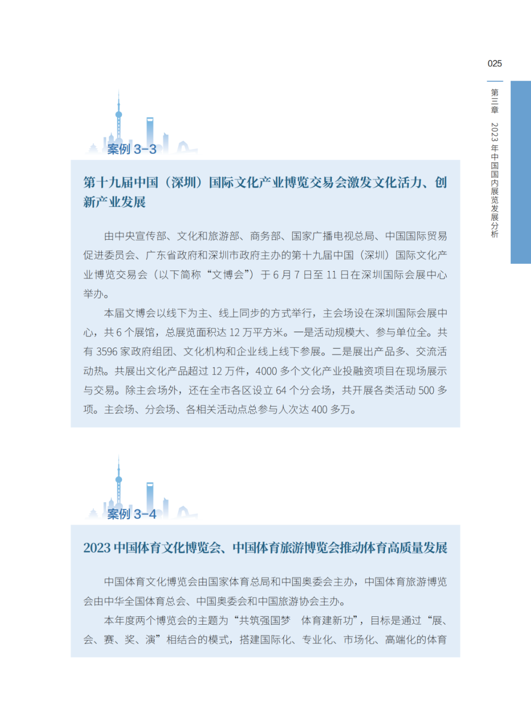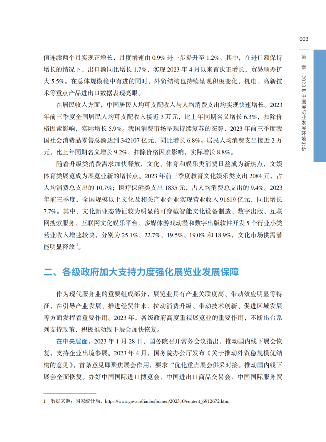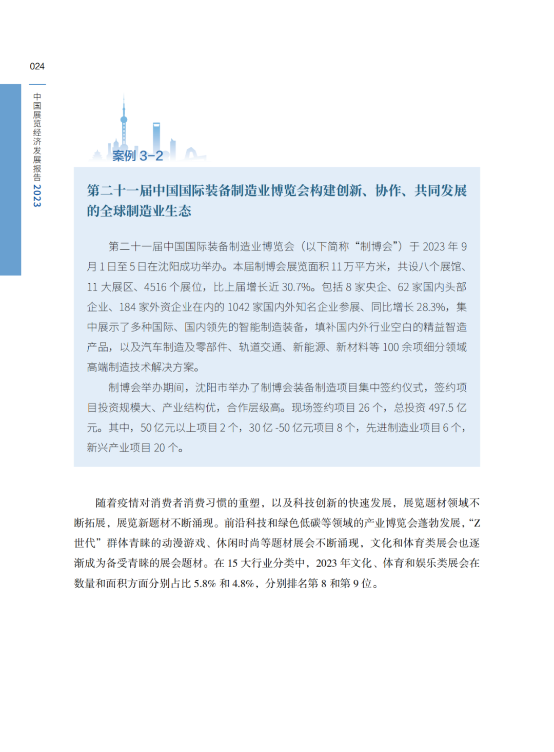 报告显示,国家级展会成为引领展览业复苏排头兵。2023年,各国家级展会全面恢复线下展,进博会、广交会、消博会等展会在规模、成效等方面全面超越疫情前水平。
